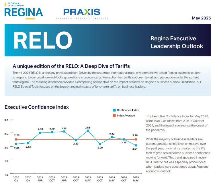 While most business leaders reported stable or improving conditions over the past year, uncertainty stemming from the U.S. tariff regime has dampened confidence in Regina’s economic outlook, with signs of caution reflected across all RELO metrics.